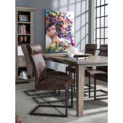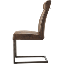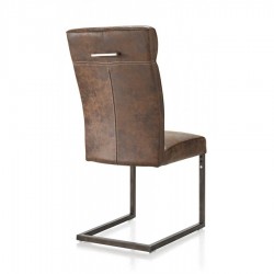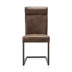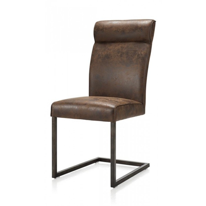 Krzesło Collin marki Habufa. Tapicerowane przyjemną tkaniną z mikrofibry w kolorze rustykalny brąz. Podstawa metalowa typu L w kolorze antracytowym.