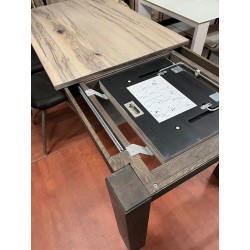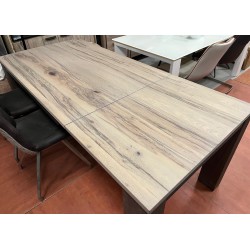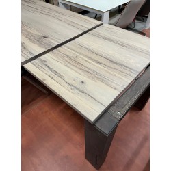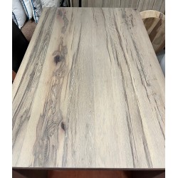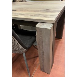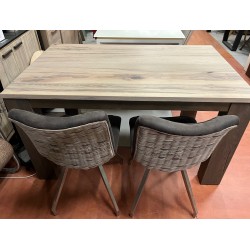 Rozkładany stół Ludo marki Habufa. Blat pokryty naturalnym fornirem dębowym w kolorze vintage summer grey, lakierowany, na powierzchni widoczny bardzo ładny rysunek drewna, który jest niepowtarzalny, nogi dębowe w kolorze brązowo-zielonym lub w kolorze blatu, do wyboru. Stół posiada bardzo przyjemny i łatwy w obsłudze system rozkładania. Stół w stylu rustykalnym, ponadczasowy i solidny, dla wszystkich miłośników klasyki.